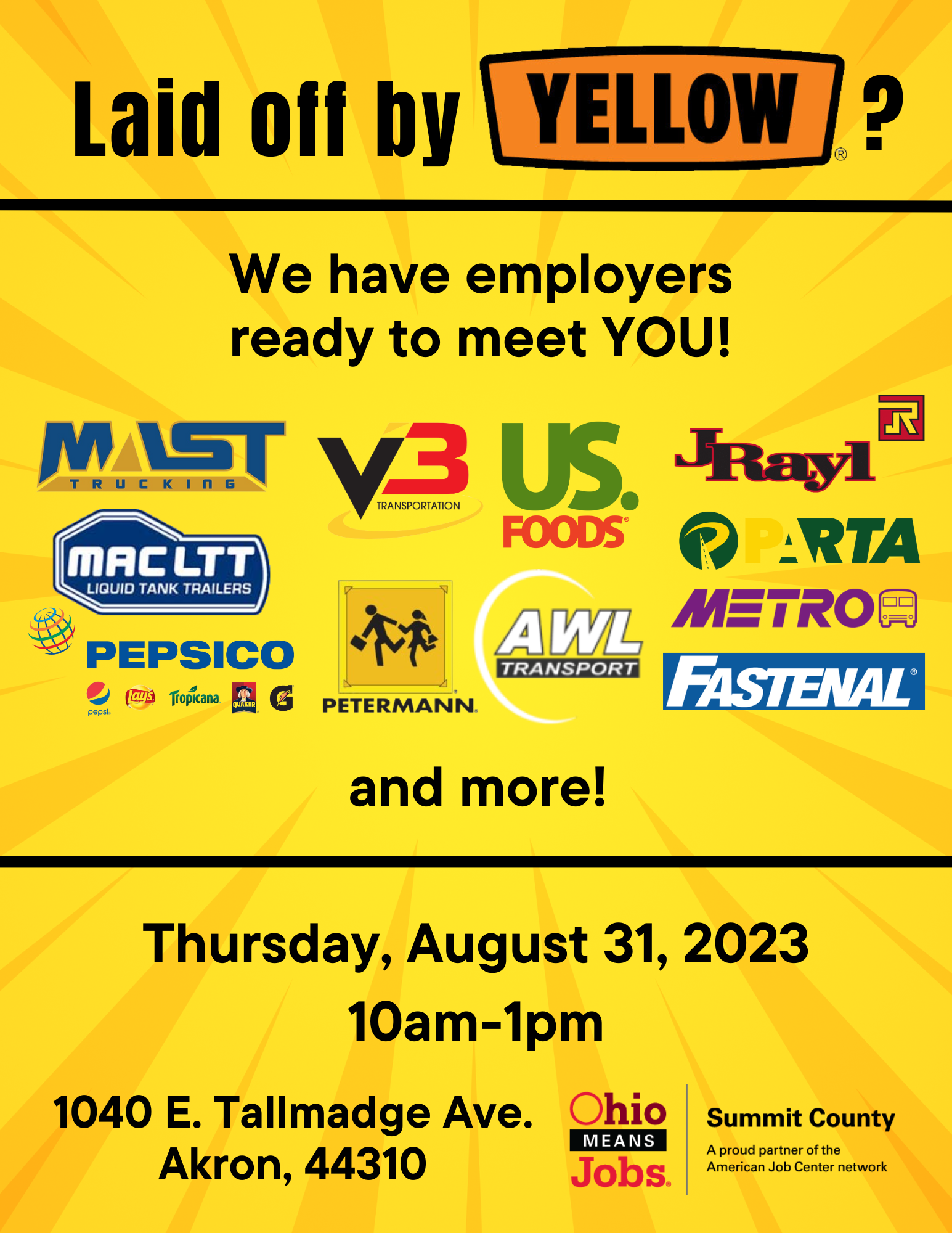The event will take place on Thursday, August 31, 2023 from 10:00 a.m. to 1:00 p.m. at the OhioMeansJobs Center at 1040 E. Tallmadge Ave., Akron 44310.