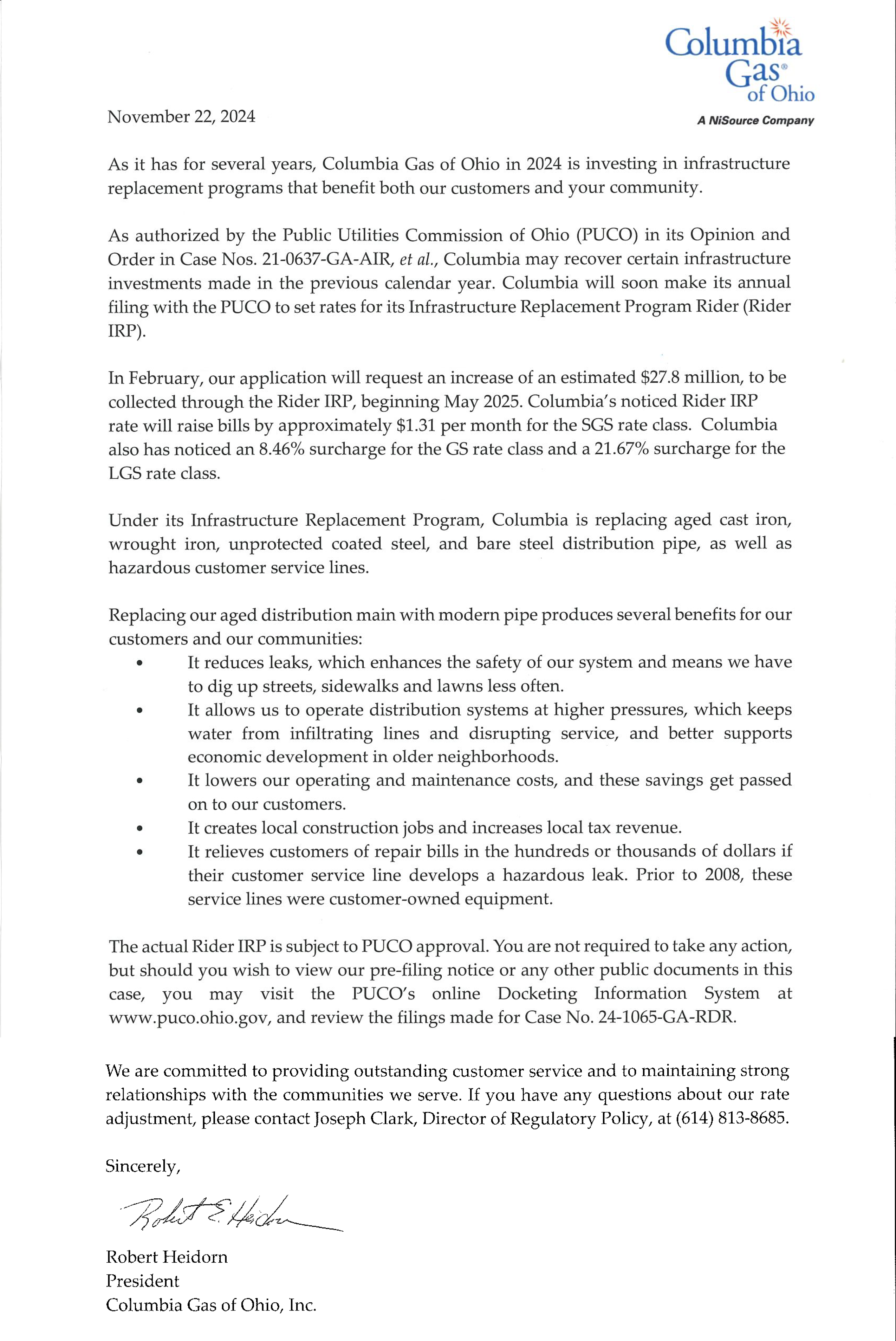 Columbia Gas of Ohio will have rate increases beginning in May of 2025. For more information, please read this letter below.